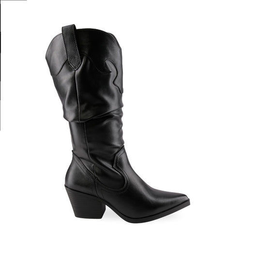 Bota alta negra de mujer con tacón bajo 144399